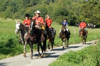 | Dire merci | Randacheval 2013, 27, 28 et 29 Septembre à La Bastide de Sérou (Ariège) Pour sa septième édition, Randacheval propose aux cavaliers et meneurs de tous horizons de venir randonner au cœur du Parc Naturel Régional des Pyrénées Ariègeoises. Etape des rallyes du Grand Régional de Midi-Pyrénées venez découvrir les sentiers du Séronais. Cette année une attention toute particulière est portée aux attelages. Au programme nous vous proposons le Samedi un parcours de randonnée et le Dimanche, nouveauté de 2013, nous vous invitons à participer à une initiation au PTV qui se déroulera sur le terrain du Centre équestre de La Bastide de Sérou. Ce PTV sera encadré par une personne qualifiée, sans idée de compétition et en toute convivialité, dans l’esprit de Randacheval. Chers cavaliers, vous seront proposés cette année, comme à l’accoutumée, deux jours de randonnées. Les cavaliers qui le souhaitent pourront participer au PTV. Lors de ce week-end équestre vous goûterez les délices bios des producteurs locaux qui vous seront préparés par les incontournables Jacques et Babé. Vous serez accueillis au village vacances de La Bastide de Sérou qui dispose d’un pré pour accueillir les chevaux en paddock. Un hébergement en chalets vous est proposé. En espérant vous retrouver bientôt. Renseignements et inscriptions sur le site www.randacheval.fr |