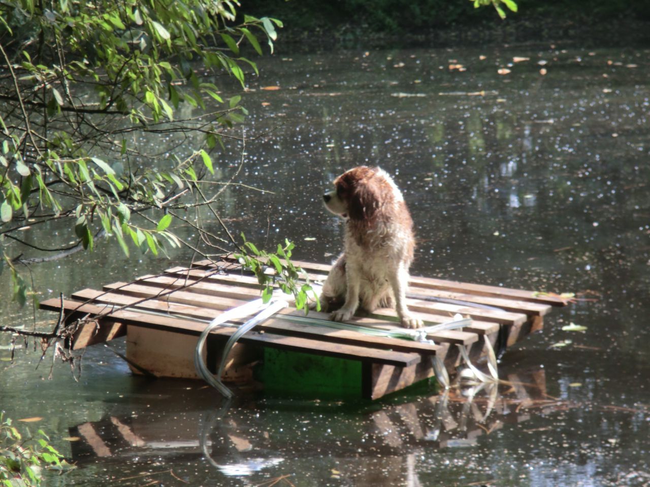 | Dire merci | Nous faisons une pause repas aux abords d’un joli lavoir ombragé. Pendant que Nous grignotons une bonne salade de tomates, Merlin coule des regards fourbes vers les gros canards occupant un très beau poulailler, près d’une grande maison de campagne. Nous observons discrètement les abords… Quand les occupants du lieu débarquent pour nous offrir une grande branche de leur cerisier, couverte de bigarreaux géants. Mince, on a encore failli être cons. Nous les remercions, honteux et hilares à la fois. La vie est belle. Après une petite chasse aux grenouilles réglementaire dans le bassin du lavoir envahi d’herbes aquatiques, we’re on the road again. Passé Caden, nous commençons à chercher le bivouac du soir, et découvrons au détour d’un virage une belle aire de pique-nique aménagée, près d’un petit ruisseau. Le temps se couvre lentement, et nous sommes ravis de découvrir sur place une petite cabane de bois, destinée aux campeurs du coin désirant cuisiner au sec. Le bivouac est monté, et je tends la ligne d’Eden entre deux grands arbres sur une zone suffisamment herbeuse. Tandis que nous montons le reste du camp, je m’aperçois qu’Eden frappe violement l’humus depuis un moment, et me regarde avec une certaine insistance. Je mets un moment à identifier le problème, jusqu’à ce que je sente une brulure aux jambes. Et pour cause ! C’est l’attaque des fourmis rouges tueuses sur ses pauvres mignons pâturons ! Je le déplace près de la table de pique-nique où nous préparons un truc délicieux dont j’ai oublié la nature. Eden se place bien en face et nous sert le regard du cheval battu pour obtenir des échantillons. La nuit venue, Merlin dort dans la cabane, Pouletto bien calé à ses côtés dans une cagette, ronronnant à donf. L’espace est exigu et, habitué au confort des nuits sans murs, je m’entête à essayer de dormir dehors, malgré le ciel qui se charge et crachine des avertissements. Je me réveille bientôt sous l’averse, et me traîne avec horreur entre les murs de bois malpropre. Kinaï, ce lâche, a depuis longtemps quitté mon duvet menacé d’humidité pour se réfugier sur les fourrures de Merlin. Je dors bien malgré tout, l’intérieur de mon duvet étant par chance resté sec. J’en serai quitte pour le faire sécher au petit matin. |