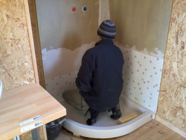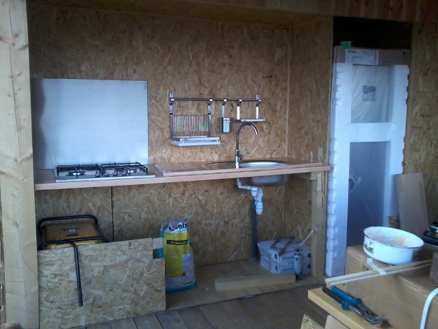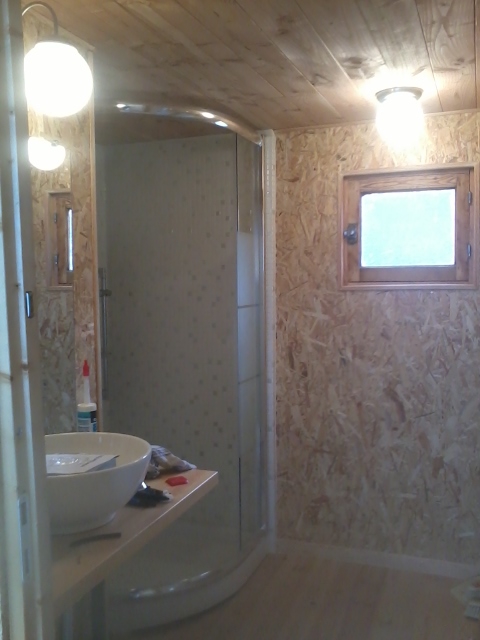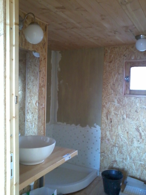 | Dire merci | Un peut de nouvelles ! cette semaine, on a fait çà : renforcement de l'étanchéité du mur de la douche ![]() Début du carrelage de la douche : ( mon homme à voulut le faire, alors je lui ai expliquer... ) Ce n'est pas parfait, mais on arrive à faire un truc presque aussi bien qu'un pro ! Merci à mon papa qui était un bon carreleur mais qui n'est plus là pour me le faire... J'ai de bon souvenirs de ses gestes et façons de faire... ![]() Pose de la crédence INOX aux murs de la cuisine côté plaque de cuisson et des supports pour égoutter la vaisselle... sous le plan de travail, il manque encore les pieds au centre pour soulager le milieux du plan de travail & des portes sous l'évier et la plaque de cuisson. Ha! et il ne faut pas oublier le FRIGO et même la planche à découper entre le gaz & l'évier ! Encore emballé...![]() Pose des luminaires ( bon, on a pas encore installé le circuit électrique & les panneaux solaire pour l'électricité mais on voulait voir ce que çà donnait...) ![]() Emplacement des futures toilettes sèches : ![]() |