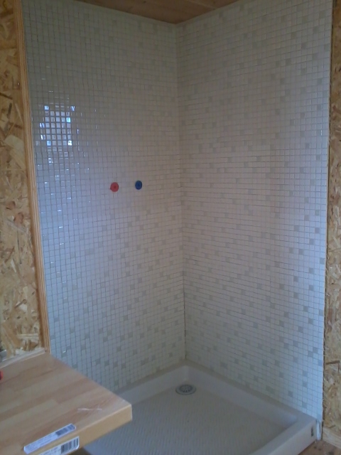 | Dire merci | çà y est ! le carrelage de la douche est terminer !!! Reste plus qu'à attendre que çà sèche pour pouvoir faire les joints ! |