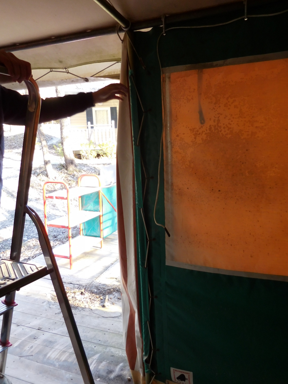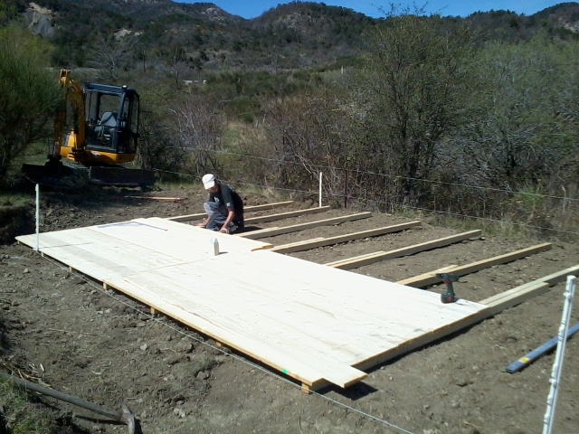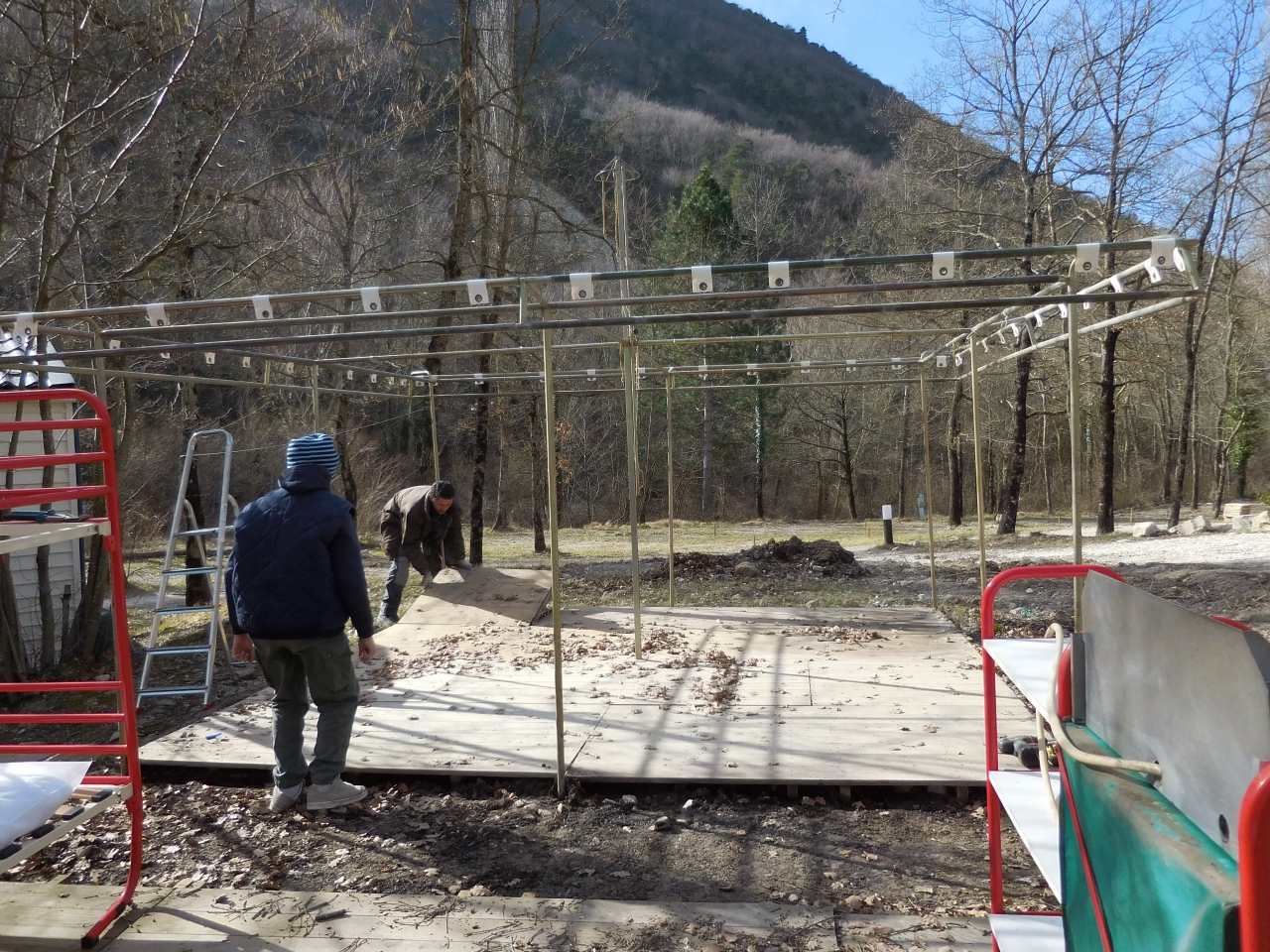 | Dire merci | Ha oui, j'allais oublier, on a fini le plancher pour la première tente !![]() ![]() ![]() |