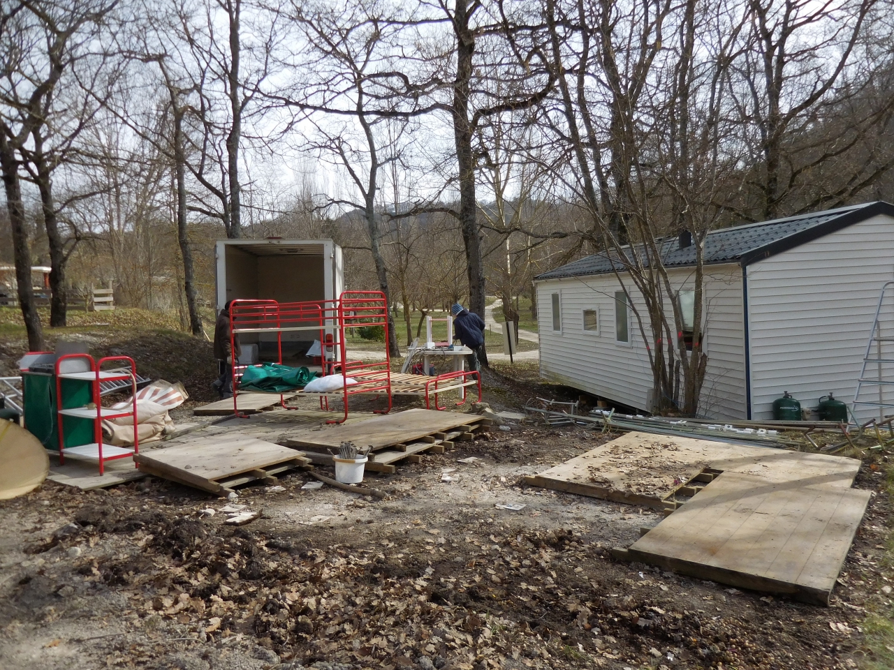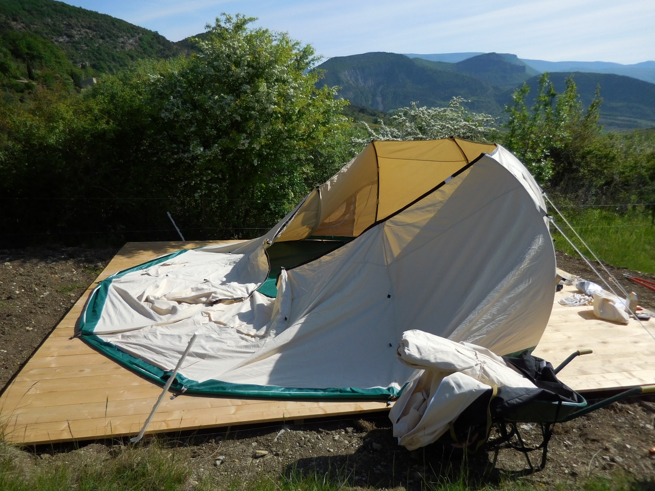 | Dire merci | Y'a du retard, mais le Bivouac est ouvert depuis le 4 mai !!! çà y est !!! On a pu ENFIN monter la première tente, çà a trainer mais c'est fait !! Place aux photos... ![]() ![]() ![]() ![]() ![]() |
