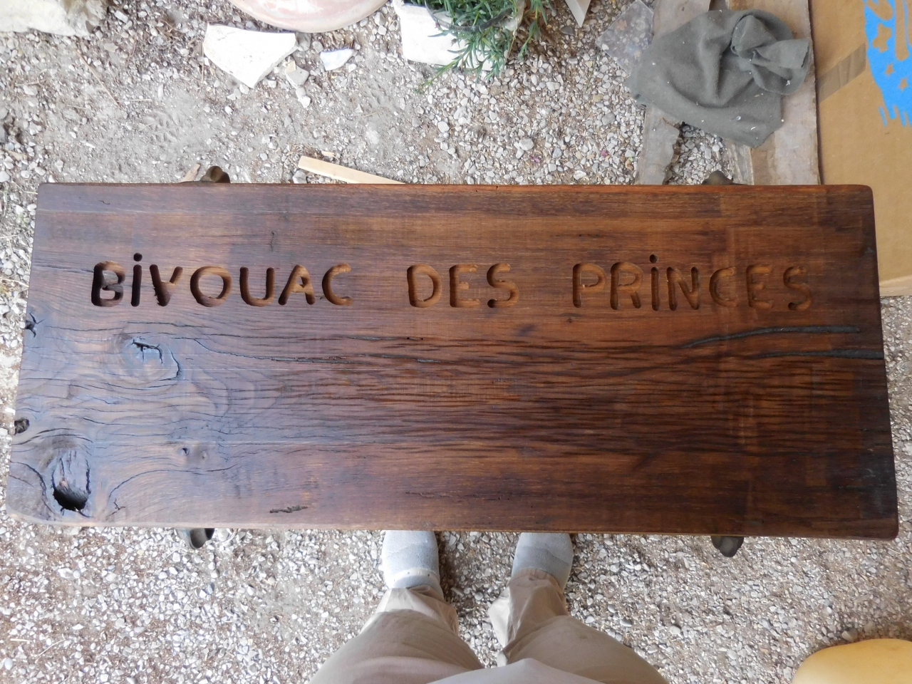 | Dire merci | On a commencer le panneau pour l'entrée du bivouac !!! C'est une planche en chêne qui a été faite il y a environ 300 ans, alors, traitement contre les bébètes... En dessous, je vais mettre une sorte de vitrine fine pour mettre des informations telles que tarifs, options... ![]() une idée de ce que çà donnera une fois fini ( je vais faire faire des petits panneaux pour les fixer dessous l'écriture ) ![]() |