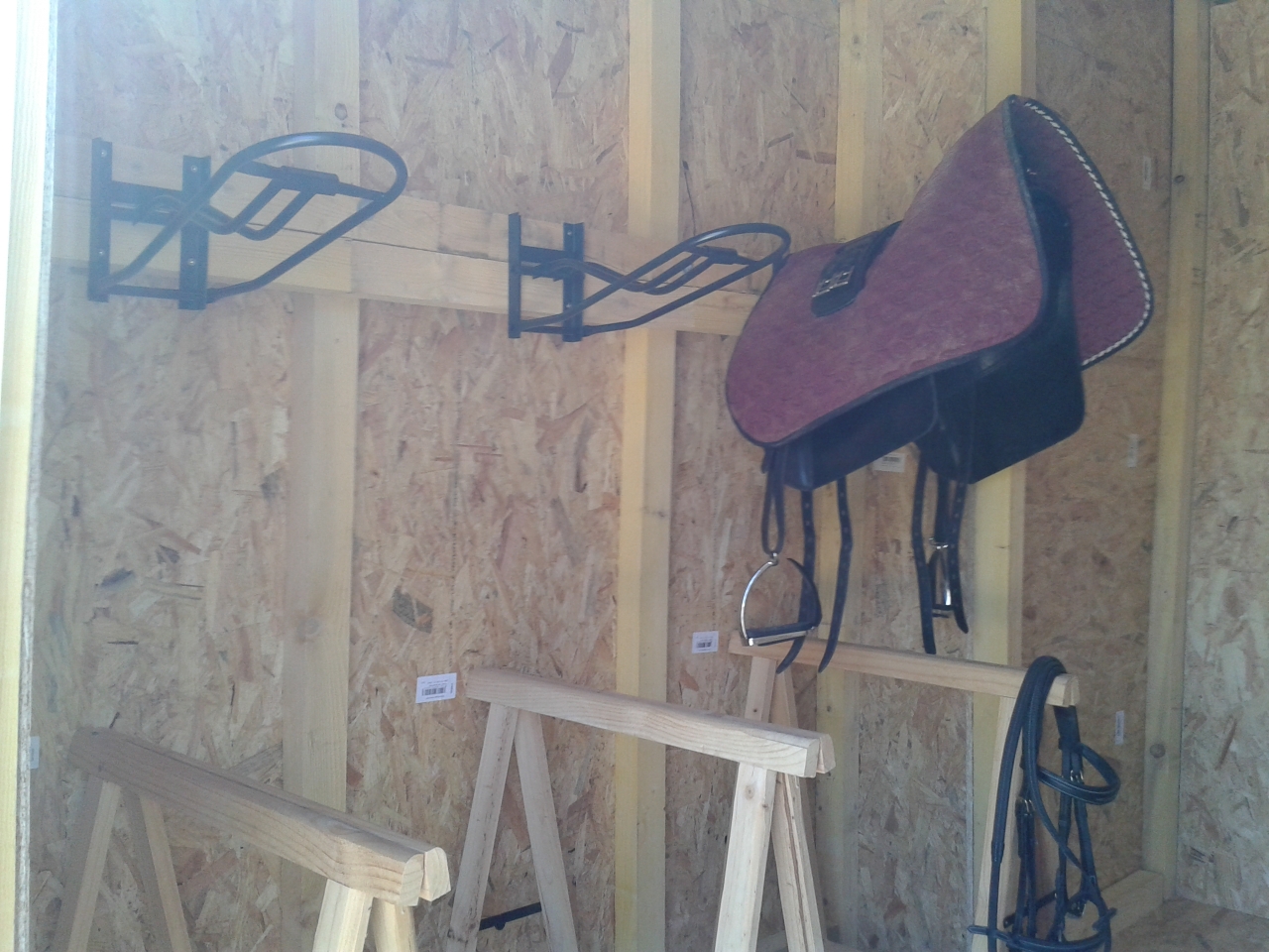| Dire merci | Bien sûre que ce serra prêt ! Il manquera peut être les petites finitions et le rond de longe, mais le principal y serra pour accueillir un groupe de 10 / 12 cavaliers dans de bonnes conditions !!! Là, mon homme à attaquer la structure de la sellerie mais je n'ai pas encore fait de photos et, cet après midi, il pleut... |