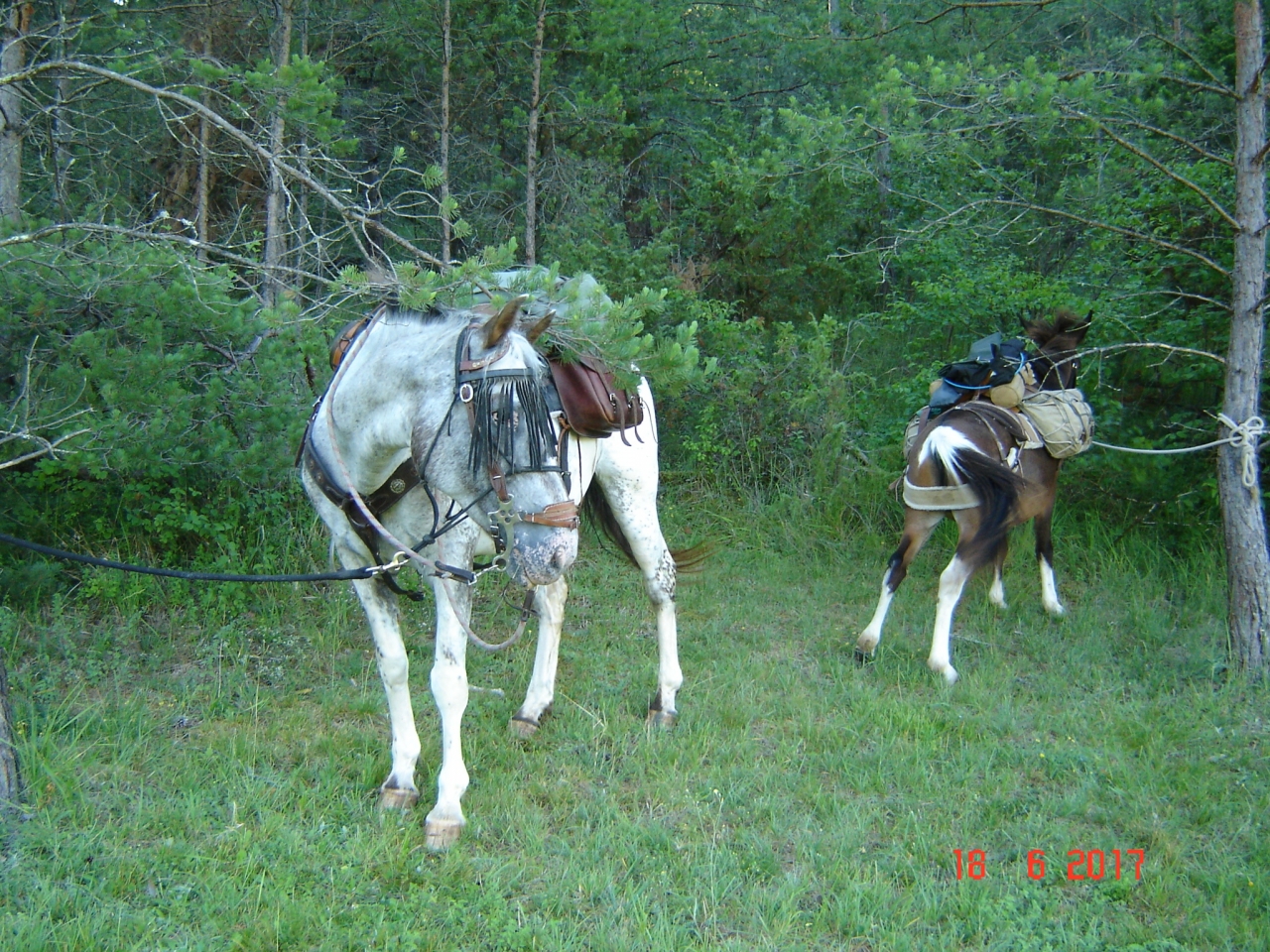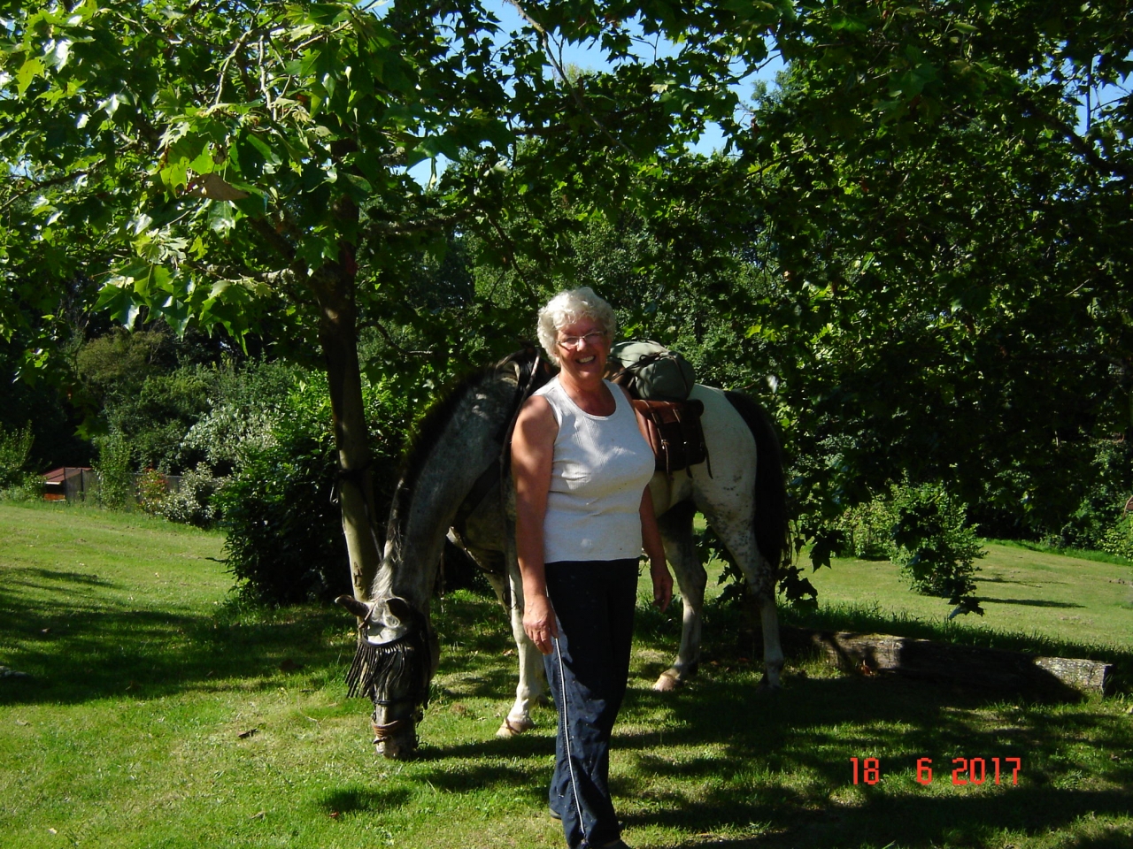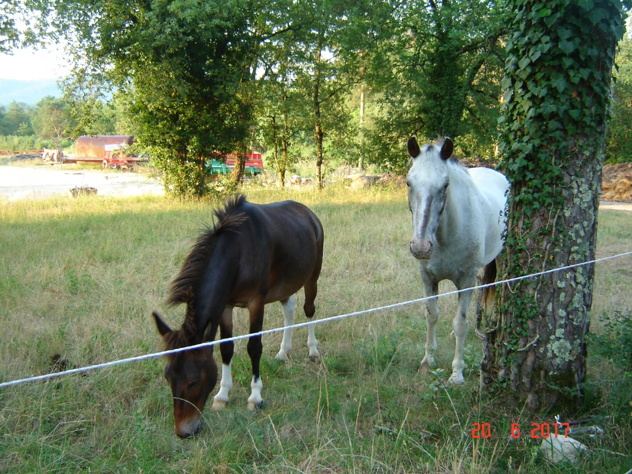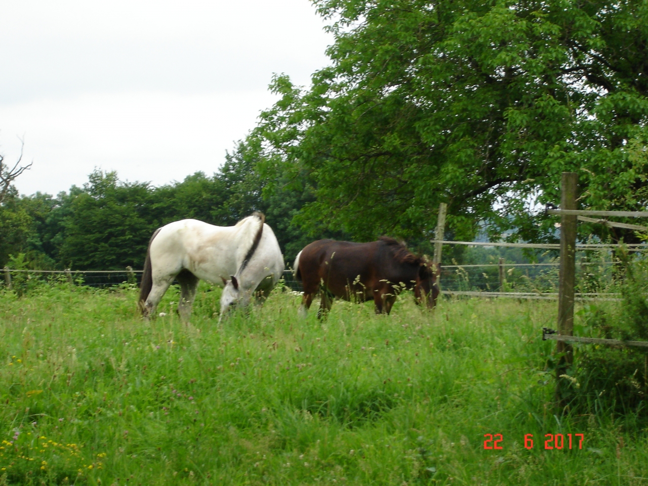 | Dire merci | Lundi 19 juin 2017,,C'est décidé ,nous partons, ma jument Kwahl 13 ans, mon mulet,Simon 7 ans et moi,(70 ans le 24 juin) Affaires personnelles et vetements et duvet dans mes sacoches et charvin,,,,,Nourriture pour une semaine, rechaud, grille, gamelles, etc dans les sacoches du mulet,,cloture electrique, piquets (arceaux de tente igloo), fil, etc dans l'autre sacoche du bât,,Boudin a grains (armée Suisse) sur le bât,seaux en toile a portée de main, Papiers ,cartes,bricoles,dans la sacoche de pommeau,,, Premiere etape Beauronne --Leguillac de l'Auche,,bivouac dans un pré, prete par un habitant (pas besoin de monter cloture, sinon un fil pour me proteger des loulous fouilleurs de sacoches!!![]() |