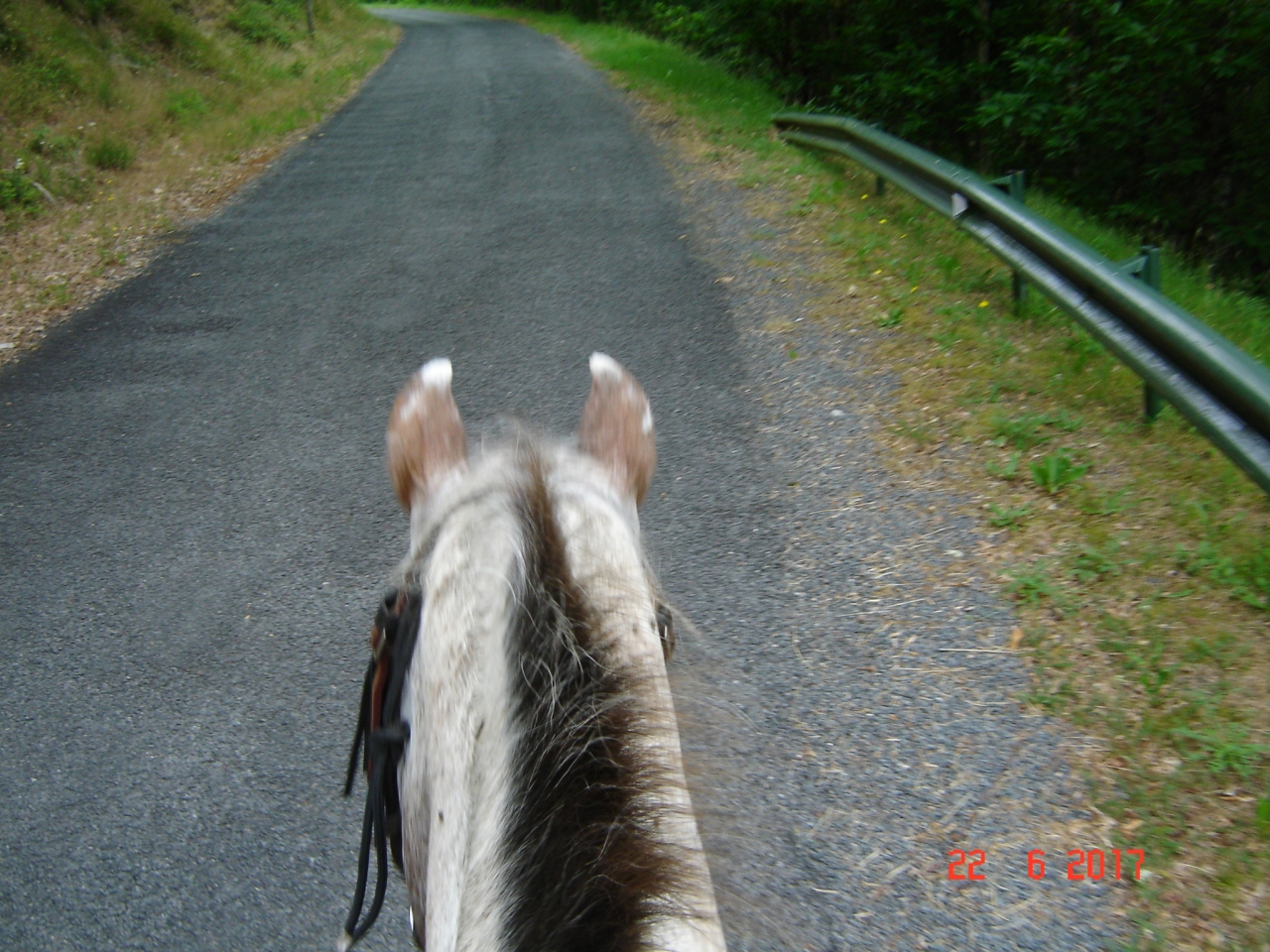 | Dire merci | Mercredi 21 juin 2017,,,,,,Levé 5h30,,Départ vers 7 h,(faut ça pour preparer, nourrir homme et bêtes,,),,grosse étape 35km,,va faire chaud,,,Nous traversons la route de Limoge et remontons la vallée de l'Auvezere,,,Direction St Eulalie d'Ans,ou des amis me prettent un coin de prés et viendront a cheval a ma rencontre,,,,Que de cotes caillouteuses,et descentes,, Je marche beaucoup a pied,pour menager les sabots (pieds nus) et la fatigue de la jument,,,,Heureusement que j'ai choisi les chaussures de montagne a la place de mes bottes!!! Vers 15h, rencontre avec mes amis et baignades des jambes des loulous dans l'Auvezere,,Belle soirée barbecue,,douche et, nuit agreable sur un transat matelassé!!! (preferé a la chambre offerte)![]() |