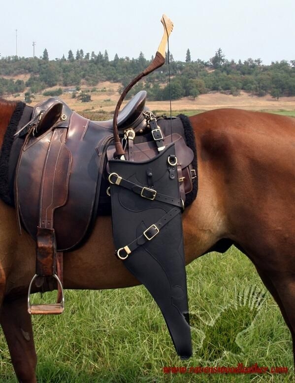 | Dire merci | sur la photo awec la selle australienne, dessous il y à une saccoche,peut être pour faire amortisseur ,protégeant à la fois le carquois mais aussi le dada et agissant comme un tampon. |