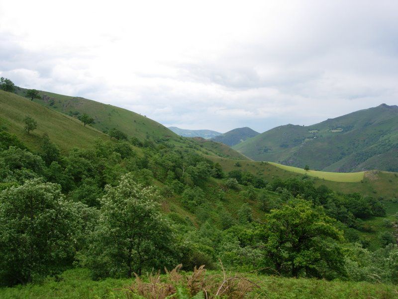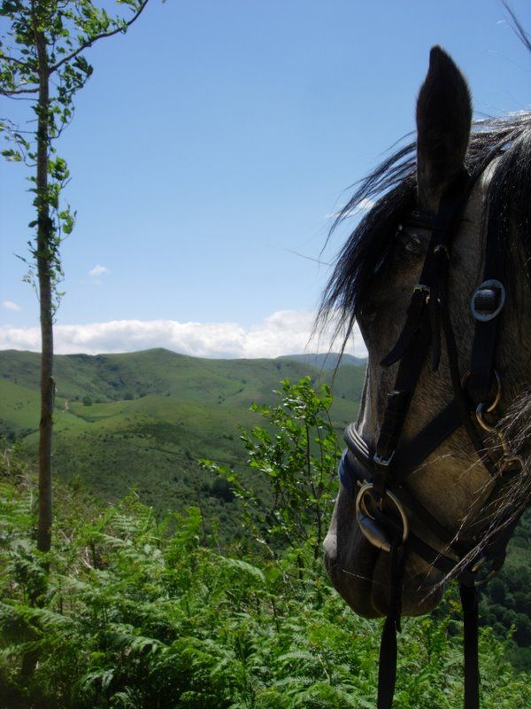 DéconnectéDire merci | On est de retour depuis vendredi soir mais comme on était encore mouillés, on a attendu d'être secs pour publier quelques photos de la rando Anhaux - Espelette - Ossès. Donc en solo pour moi avec Azan pour le premier tronçon Anhaux -Espelette qui s'est révélé plus ardu que prévu. Faut dire que si Julie m'avait dit que le tronçon du GR10 après Bidarrai était juste impossible à cheval, cela m'aurait évité pas mal de kms ! Donc quelques photos d'abord de ce premier tronçon absolument magnifique. J'ajouterais qu'en solo, on prend plus de temps pour apprécier le paysage mais les patatis et autres patatas des filles meublent bien la vie aussi.... En surmontant Saint-Martin d'Arossa ![]() La pause de midi avec Paxtor qui me suis depuis Anhaux et que je ne parviens pas à faire fuir même un lui lançant des cailloux. Il m'aime, c'est sûr.... ![]() Pour l'instant pas de pluie. |