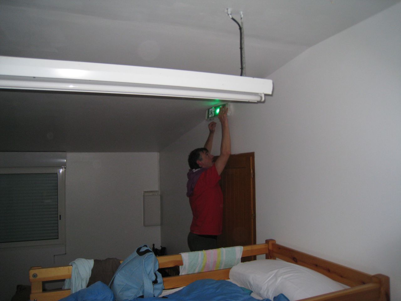| Dire merci | Notre serviteur Pantxoa, qui squatte le dortoir des filles (normal, sur sa carte d'identité c'est une fille), qui essaye de démonter le luminaire "sortie de secours " pour que nous puissions dormir tranquillement...![]() |