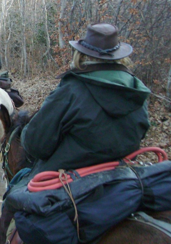 | Je mettrais un petit bémol : sur la 1ère photo de Sauvage on voit 2 mousquetons : l'un est très bien , l'autre le mousqueton à pompe est trop léger ..ça va sur les renes mais en cas de panique ça pete très vite ... Nous chaîne en tas au fond des fontes et corde attachée à la selle ... |