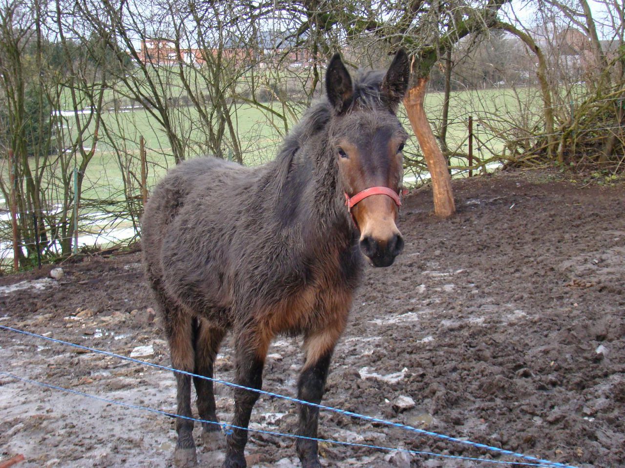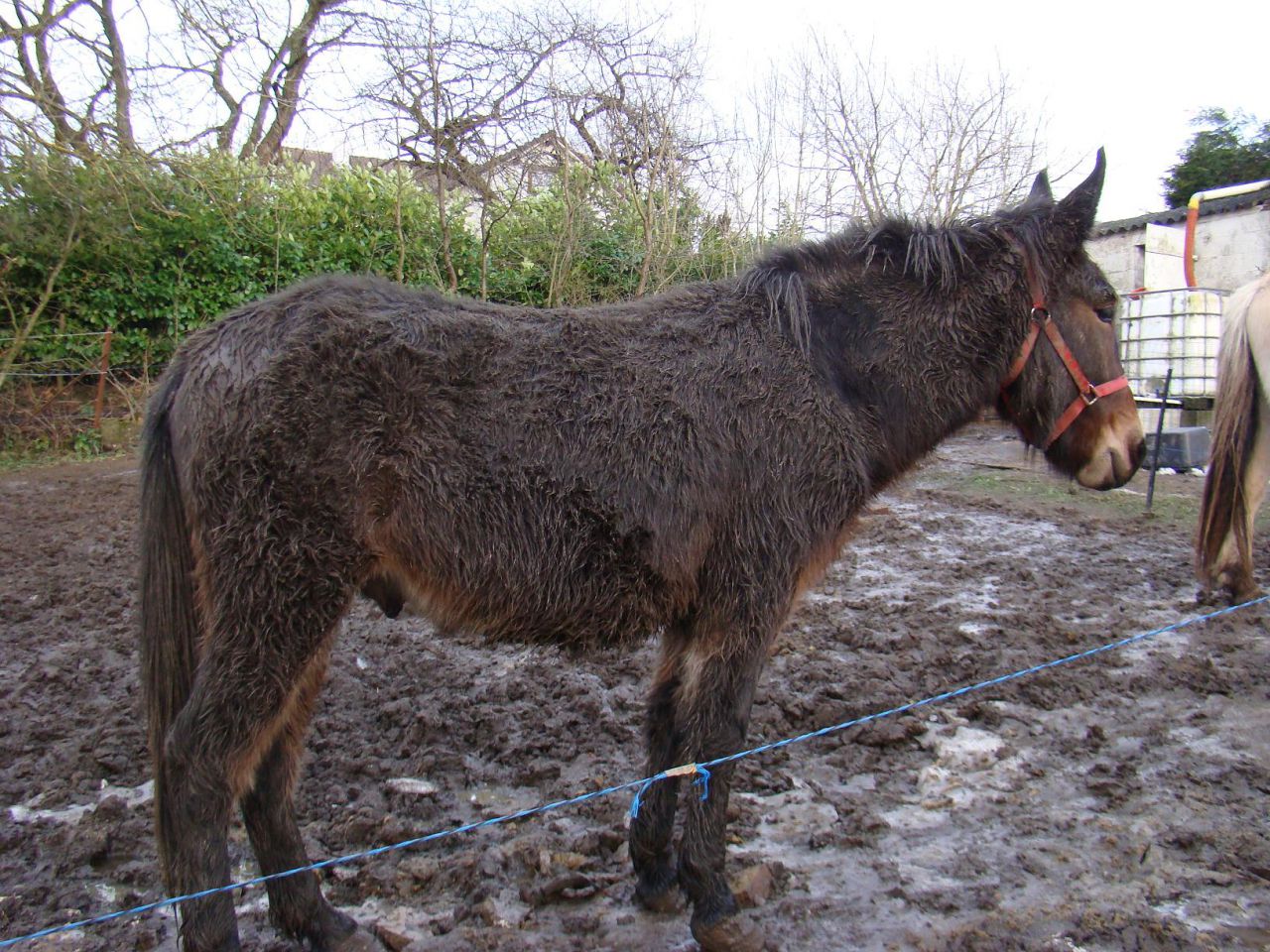 DéconnectéDire merci | Voici des nouvelles de Tony, mon mulet. Il a super vite progressé depuis 3 mois. Il répond bien aux jambes pour toutes les allures et commence à assimiler la rêne d'appui. Mais malheureusement, je suis dans l'obligation de le revendre si je veux rester en bons termes avec le voisinage. En effet, des voisins se plaignent car il brait de trop à leur goût (pourtant, c'est seulement l'après-midi quand il sent arriver l'heure de la bouffe ou lorque mon mari part avec sa jument). Mais enfin, comme j'habite là depuis peu, je ne veux pas me mettre le voisinage à dos. Si vous connaissez quelqu'un qui cherche un mulet de toute confiance, merci de faire passer le message. Je le revend le prix que je l'ai acheté, soit 1000€. Il est dans le nord des Ardennes belges. Merci pour lui |