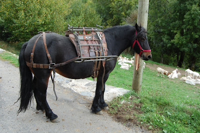 DéconnectéDire merci | tu veux aller où ? J'ai vecu treize mois en voyage sans cheval de bât - tué en Turquie - avec deux sacoches et un gros boudin derriere la selle pour tente et duvet Pour randonner tu n'as pas besoin de grand chose |