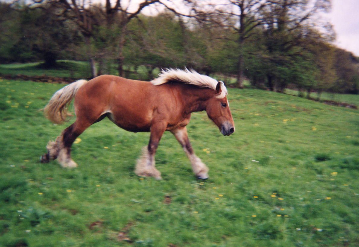 | Dire merci | zuzue c'est dommage, j'avais fait un post photos intitulé "un comtois "ça" galope pas... et autres clichés". j'ai eu pas mal de réflexions de la part de "cavaliers classiques", dont une fille qui travaille dans une écurie trotteurs qui m'avait dit "c'est pas un cheval de labour "ça"?? ah bon, "ça" se monte???" d'où le titre de mon post ![]() ma jument est très réactive et adore se piquer un galop, je ne le fais pas souvent mais quand on le fait je m'éclate et elle aussi! d'ailleurs au départ au galop j'ai interêt à m'accrocher parce qu'elle décoche jusqu'à 3 coups de cul de joie... et au pré faut voir aussi comment elle se défoule par moments. les seules photos que j'ai d'elle au galop c'est en liberté dans le pré : ![]() ![]() |