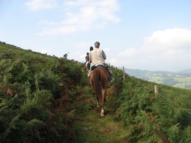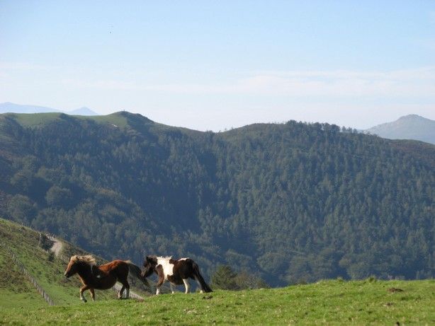 | Dire merci | c'est parti ! arrivée à Espelette un petit peu en retard (mais c'est pas la faute aux chevaux pour une fois )on est attendus sur la grande place ! ![]() départ : 10h et quelques hum ![]() ![]() stop, Pantxoa peut pas s'empecher de s'arreter quand il croise des connaissances ![]() ![]() vue du mondarrain ![]() Notre Guy tortionnaire en chef ![]() Isidore le "nouveau" et Isil (qui veut dire tais toi en basque, prononcer Ichil) ![]() Les inséparables Opaline et Naia ![]() le plus beau ![]() manque de respect du code de la route équestre ou queue de poisson d'Isil à Uruguay ![]() on commence à grimper Babeth, Guy, Isidore, Michelle sur Naia (on a perdu Pantxoa en route), Julie, Chantal (ma mère), Philippe ![]() |