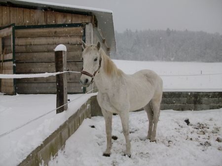 | Dire merci | bonsoiril neige sur le LEON Nous avons mis nos 2 lascars ce soir dans le van comme chaque vendredi pour une reprise en club compte tenu qu'enextérieur c'est pas top en raison de l'humiditémais ce soir en sortant du manège suprise c'était tout blanc, j'ai pensé d'abord qu l'on avait abusé du vin chaud mais non mes choux fleurs sont encore plus blancs sous la neige (et surtout beaucoup plus chers )on mis les couvertures sur les chevaux et retour case pâture à 6 km , content quand même d'avoir un 4 x 4 ![]() ce week end peut être ballade, au pas car avec ce temps ils sont dynamiques j'ai fait une fois fois une ballade sous et sur la neige dans les MONT D'ARREE le probléme c'était la neige collant sous les sabots, en gros paquest, le cheval boitait de temps en temps, mais c'était superbe ![]() |