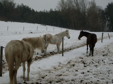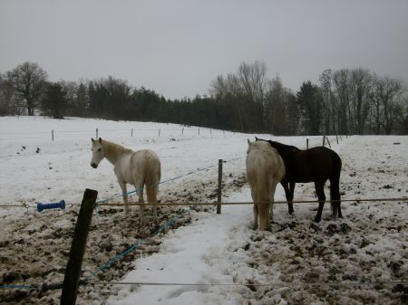 Spleen : Dis donc, c'est super jolie chez toi !! Y pas mal de neige aussi !! Nous ça fait 2 jours qu'on a du soleil et les chevaux apprécient !!! Ils se prennent des bains de soleil et je crois qu'ils sont contents !! ![]() Faut espérer que ça dur et que cette satanée neige s'en aille !! Qu'on puisse reprendre le travail et les sorties des chevaux ! |