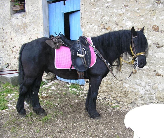 | Dire merci | Merci beaucoup du compliment pour lui. C'est vrai que n'y connaissant rien en chevaux, je l'ai acheté l'an passé uniquement sur sa belle gueule et son aspect massif. En rando (sur une journée , je débute) il n'est pas très rapide sur le pas, un peu inconfortable sur le trot et génial au galop, avec ses enormes papattes pleines de poils!!! La force tranquille quoi! Adorable avec mes chiens, les autres chevaux, bref, on oubli vite les défaults. Je sors d'un stage etho de 4 jours avec lui et les progrès ont été énormes, a moi maintenant de le faire travailler régulièrement pour ne pas perdre les acquis. Dès que j'ai le temps, je vous fais un poste sur le stage. |