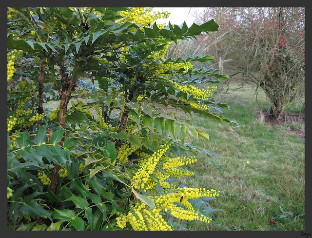 | Dire merci | toute requinquée par les images de Casi et Maody !!! ![]() du coup, je vous mets mon arbuste en fleurs en décembre !!! un mahonia "charity", dommage qu'on ait pas la délicieuse odeur et le vrombissement des abeilles qui s'affairent autour (on en voit une en bas et au milieu de l'image )![]() |
