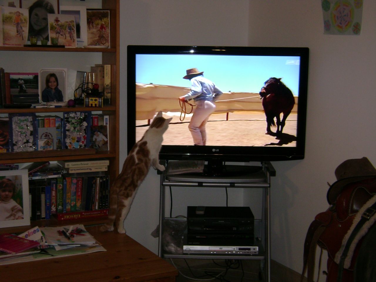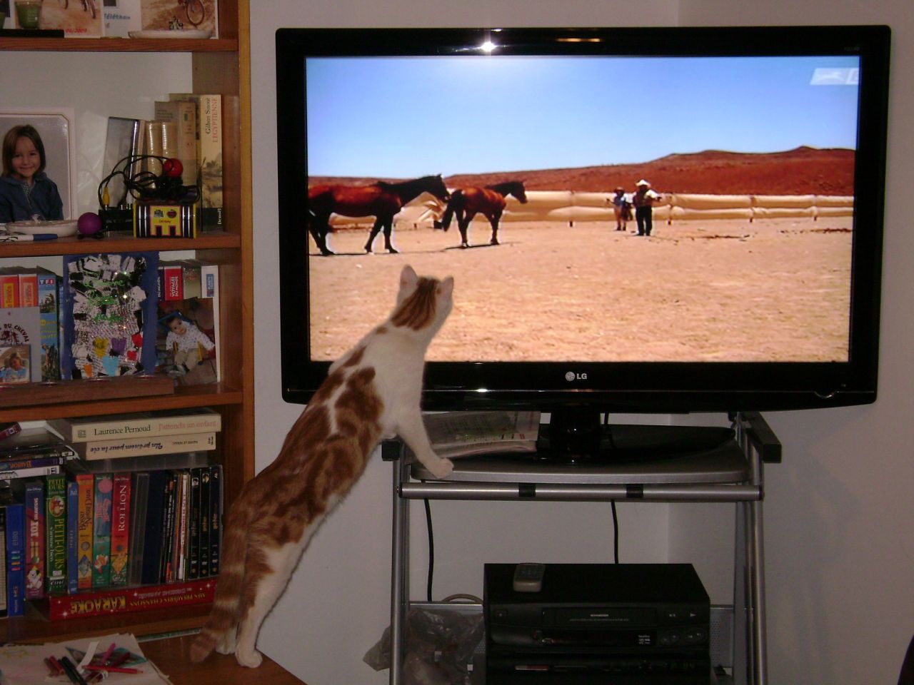 | Dire merci | Tout plein de pour Camillenath : chez mon père, c'est le chien qui regarde la télé dès qu'il y a des chevaux... et répond aux autres chiens ! |