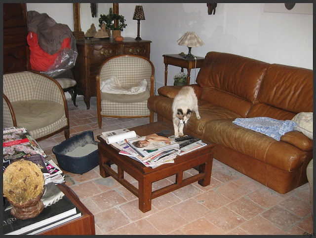 | Dire merci | du soir l'appartement de Kali : toilettes, fauteuil, lit de repos ... il a de la lecture et la télé (faut beaucoup aimer son chat pour vivre avec une litière dans chaque pièce ... )![]() |