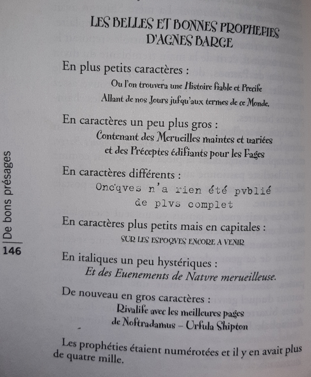 | Dire merci | 60 pages lues de: De bons présages. J'aime beaucoup le style, mais j'ai peur de me perdre avec tout les personnages . Je me suis déjà paumée avec cette histoire de bébé A, bébé B, interchanger avec l'antéchrist J'adore les notes de bas page Message édité le 24/01/20 à 15:25 |