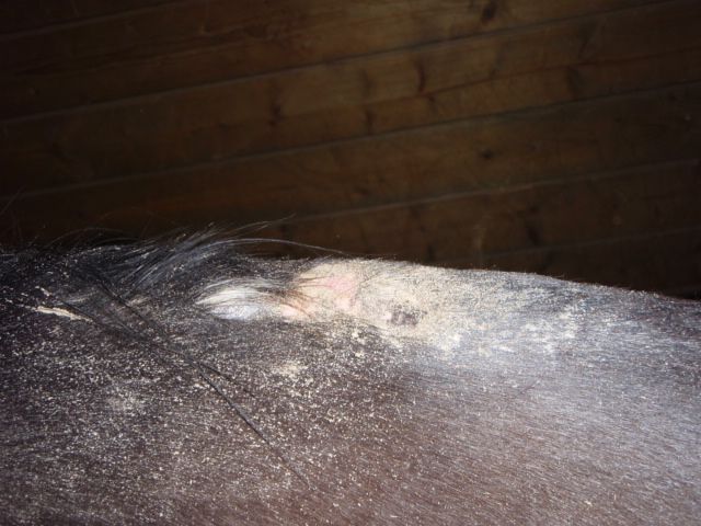 | Dire merci | [url=https://www.1cheval.com/membre/services/photos/images/57358.jpg] ![]() [/url] par contre c'est du sable sur la robe. Pas du tout des pelicules de peau. Et les poils qui tombent ça part par touffe comme ça [url=https://www.1cheval.com/membre/services/photos/images/57359.jpg] ![]() [/url] maintenant ça atteind la base de la criniere. J'ai mis de la vétadine hier soir dessus. J'avoue que je m'inquiete un peu. Il n'y en a que là. |