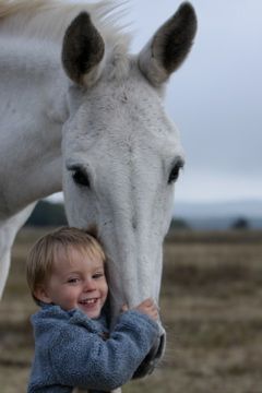 | Dire merci | A tout ceux font les enfants ont peur des grosses bêtes... Nathan vient de découvrir une jolie mule totalement inconnue au milieu du pré des chevaux d'une amie... une grande rencontre... ![]() ![]() |