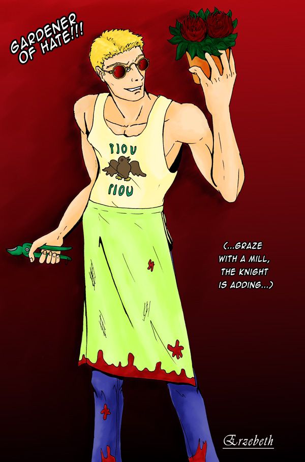 | Dire merci | Hi hi mdr! Cela étant, j'avais pas vue cette image, mais j'avais aussi pensé à un truc du genre... parce qu'il y a quelques mois j'avais inventé un personnage de chasseur de vampire jardinier psychopathe! |