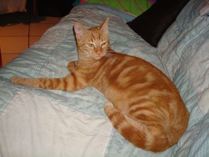 | Dire merci | le machin là, c'est LEO (si si c'est un chat, regardez, y'a 4 pattes et 2 oreilles!!!)![]() bon, une vue un peu plus flatteuse... ![]() ah ben zut, encore raté.... sinon, voilà à quoi il ressemblait en aout 2005, quand je l'ai rencontré à la spa: ![]() il était malade, mais s'est heureusement vite retapé. à 5 mois,il était déjà bien grand, mais toujours avec sa bouille de bébé ![]() et moins d'un an après avoir adopté léo, j'ai craqué sur cette photo sur le site de ma spa ![]() 15min et 3 coups de fil plus tard, il était réservé! premières photos chez mes parents, je découvre mon petit ORION à travers l'écran...et je fonds ![]() ![]() dès le début, il embêtait léo sans arrêt... ![]() ...c'est d'ailleurs toujours le cas! ![]() ![]() mais bon, le reste du temps, ça donne plutôt ça: ![]() ..ou ça ![]() et pour finir, qq photos d'orion ![]() ![]() oila, désolée pour le pavé, mais ça fait bientôt un mois que je ne les ai pas vus, ils me manquent mes mini fauves |