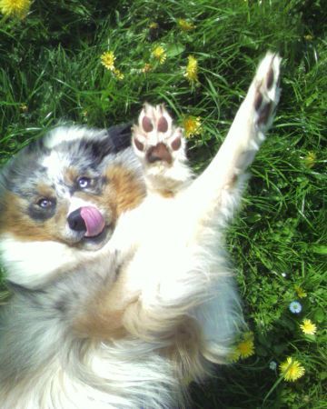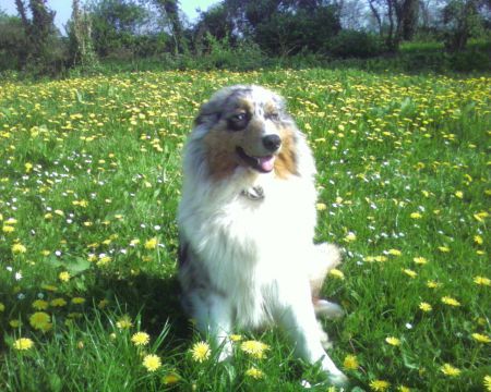 | Dire merci | Depuis fin mars j'ai une nouvelle arrivée à la maison!! Et oui un berger australien !! trop mignonne et super adorable avec un énorme coeur ![]() ![]() La miss a eu 1 an au mois d'Avril!! |