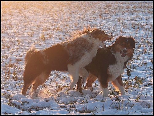 Déconnecté | Je ne perds pas espoir, un jour je les retrouverais côte à côte pour faire dodo ! Hum... moi je n'espère plus ! Faust, super les photos de tes Aussies. On voit bien l'effet "neige" sur leur comportement ! |