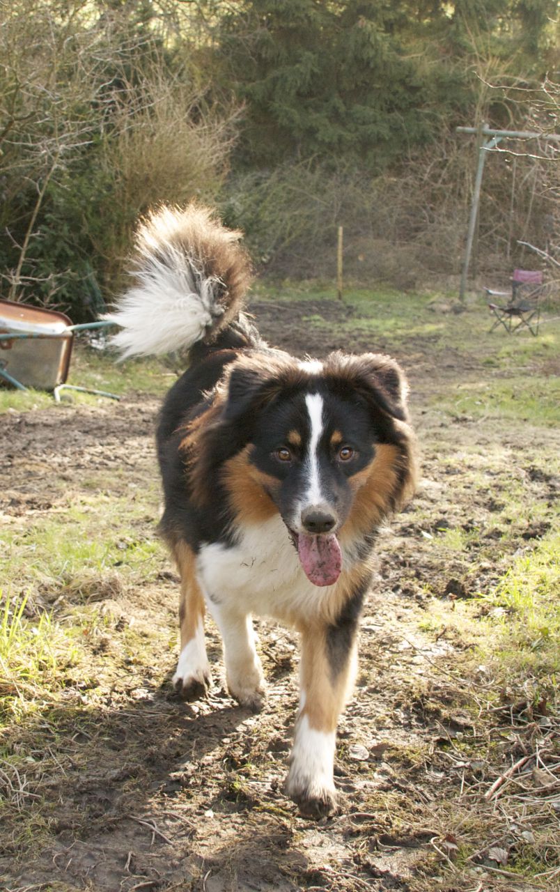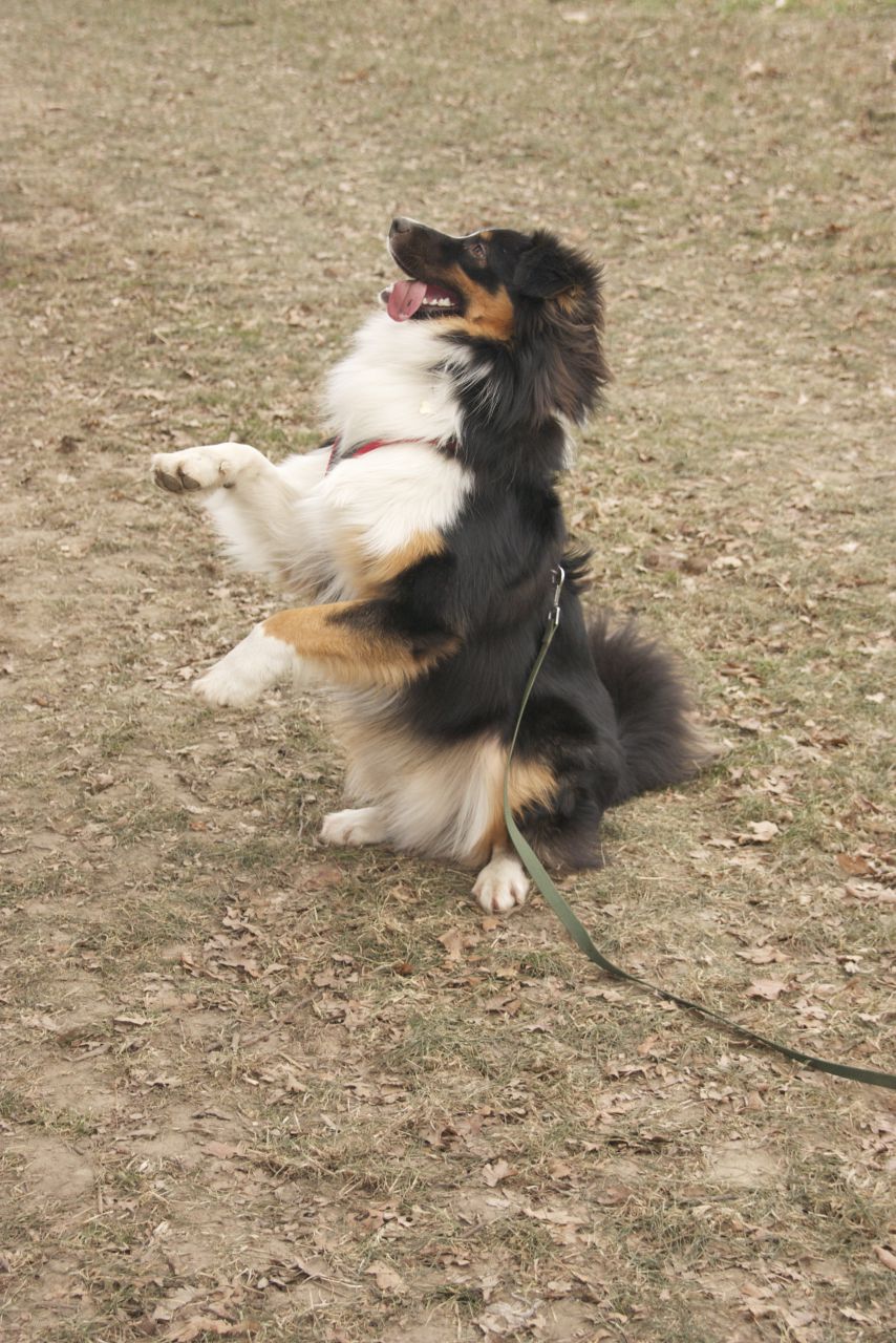 | Dire merci | Tu fais comment pour apprendre le stop à distance? Avec une longe? non, je stoppe pendant les rappels (mouvement de mon corps vers l'avant avec la paume de ma main vers l'avant). Je leur ai appris à toutes petites car c'est plus pratique quand on les amène à cheval. C'est un "stop-couché" sur place, plus le droit d'avancer. Normalement, en club d'éducation, ça s'apprend souvent dans les cours "avancés" mais en fait, les chiens comprennent assez vite, jeunes. |