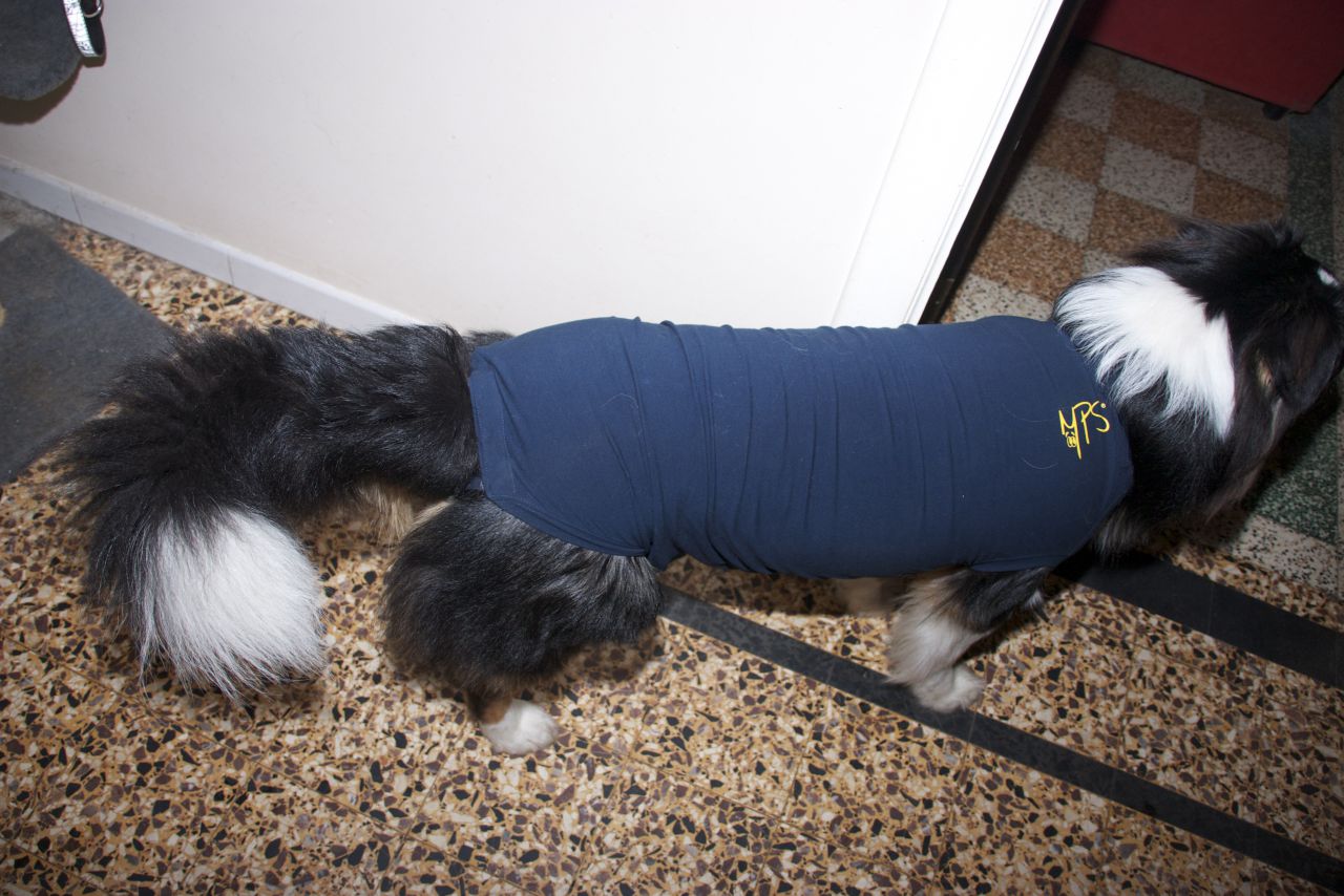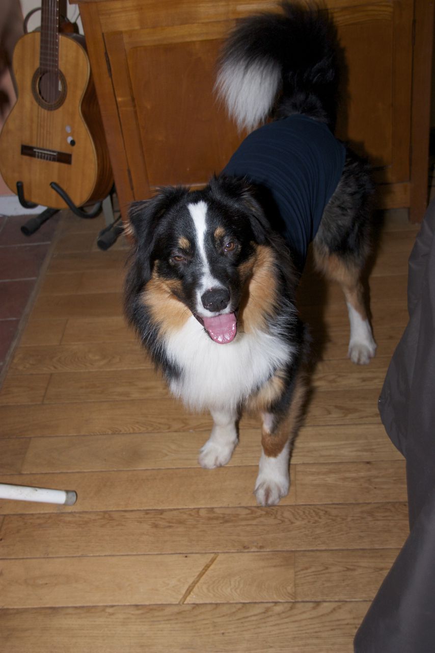 | Dire merci | Mon convalescent ce matin...![]() et pour vous montrer sa "tunique" : ![]() ![]() On ne voit pas bien, mais avec ses poils aux cuisses, il est ridicule de derrière... le pauvre... |