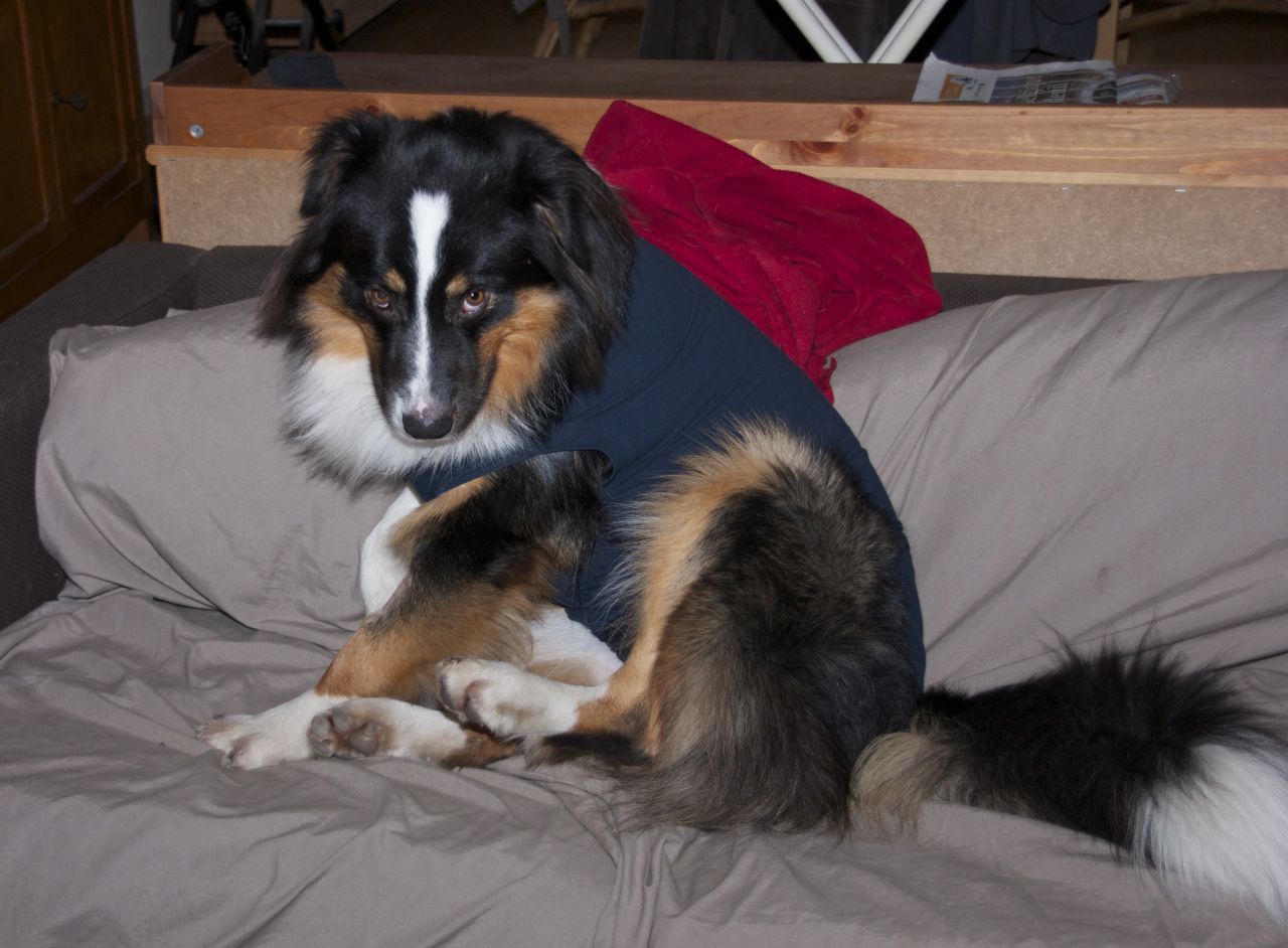 | Dire merci | Un Alsachien, ça a reçu le feu vert de sa véto pour être lâché dans le jardin pour "défoulage"... ce qu'il a pu faire un peu ce matin avec 0°... Résultat : un chien surexcité + froid qui pique les fesses = un chien autiste qui ne savait plus s'il devait me rapporter un jouet, courir, revenir, recourir, etc, etc... Du coup, ce soir, rebelote, ça va lui faire du bien ! (et à nous aussi du coup !) |