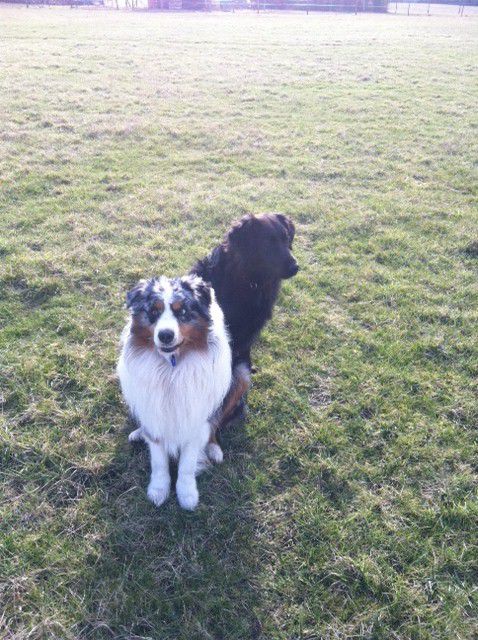 | Dire merci | Laure Gep aussi en temps normal, mais là, j'ai du un peu stopper le jeu, il finit par sauter sur place style "kangourou" et vu qu'il ne peut pas... On a travaillé un peu au clicker tout à l'heure... faut bien le distraire ! On a fait les bases : marche au pied : ok, le stop/assis au pied : impeccable, le recule au pied : idem... et pour le plaisir, on a fait la marche en passant sous la jambe à chaque pas, il adore, il me l'a fait tout foufou, mais très bien aussi ! Rah, que je l'aime mon loustic ! |