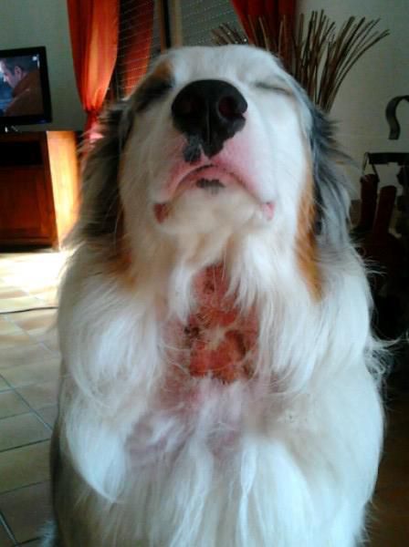 | Dire merci | Kat et merde... surtout que Fluo est un chien bien dans sa tête... pauvre loustic... Ca me fait penser à une connaissance qui avait aussi mis son Australien en pension durant 1 semaine, pension tenue par l'amie d'une amie à elle... Elle fait confiance à cette personne et lui laisse son chien... quand elle est venue le reprendre, la "responsable" lui dit, il est irrité à cause du collier... ok, pas grave, elle rentre chez elle et regarde... et là... En fait, le chien s'était fait attaquer par un autre, grosse morsure à la gorge, mais la sois-disant responsable n'avait rien vu ! Son loup a été mis sous antibiotique, ça c'était infecté, il a fait une fièvre de cheval, bref, pas au top... |