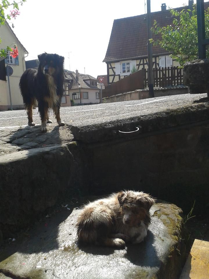 | Dire merci | Juliie, la noire, Eydia, est un tout petit modèle : 19kilos. Elle pourrait faire partie des "mini-aussies" presque. Au contraire, Iwane sera un grand modèle, dans les 25kilos... je fais dans la différence, moi Merci pour les compliments je les transmettrais aux filles Et parce que ce n'est pas un australien mais que je l'aime énormément, qu'il a plus de valeur à mes yeux que n'importe quel pur race, je tiens à écrire quelques mots pour mon vieux Simba de quinze ans bientôt qui a suivi tous mes déménagements, toute ma vie, mon enfance, mon adolescence... Je t'aime mon vieux bébé ![]() |
