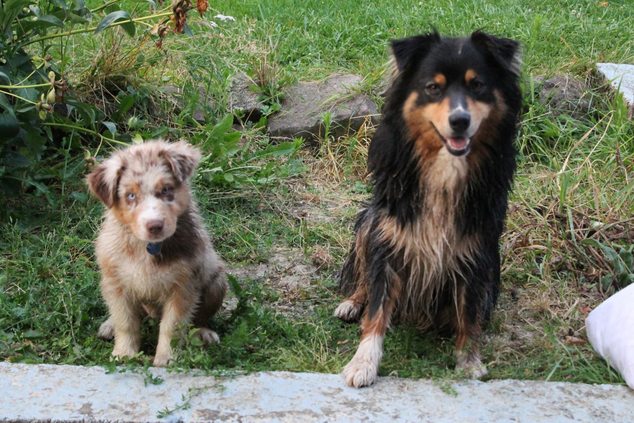 | Dire merci | Adorable ! Elle est déjà grande par rapport à sa copine !La mienne a mis un moment a grandir ! Mais quand je la compare avec certains aussies de 4 mois, je sens qu'elle ne va pas être un grand modèle non plus |