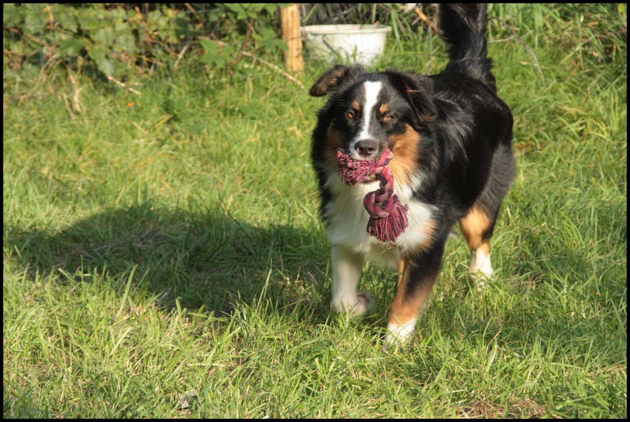 | Dire merci | Elle est où cette expo Faust ? Aujourd'hui, Geoyce est allé en cours, et ça s'est super bien passé ! ![]() Elle est vraiment à l'écoute, et comprend super vite. Marche en laisse avec tous les chiots, elle est top. Elle commence à comprendre le "au pied". Elle est pas super connectée à moi, mais ça vient. Ensuite, j'ai essayé en prenant la boite de friandise en la secouant, pour bien qu'elle me regarde, elle était pas spécialement mieux, donc je pense continuer sans.. J'aime pas trop le fait d'avoir toujours des friandises. J'ai pas spécialement envie qu'elle fasse quelque chose uniquement parce qu'après elle va manger. Le "assis", elle m'épate ! Elle a presque compris ! Il faut qu'elle soit bien connectée pour qu'elle obéisse, mais si c'est le cas, elle répond du premier coup. On a essayé le coucher, vu qu'elle en avait jamais fait, je l'ai aidée, et je vais commencer à lui apprendre doucement cette semaine. Le rappel, pas de problème ! Et si je vois qu'elle n'obéit pas, je n'ai qu'a lui tourner le dos (même plus besoin de courir/marcher dans l'autre sens !), et elle arrive en courant ! Ensuite, on a lâché les chiots... Autant la semaine dernière, elle se méfiait un peu, autant la, elle était folle ! Elle courrait dans tous les sens, elle était super contente ! Et quand je l'ai appelé (avec la boite à friandises), elle est venue tout de suite !Je suis très contente d'elle ! C'est celle qui répond le mieux parmi les 3/4 mois ! Et pourtant on est venues que deux fois. La semaine prochaine, on fera un peu d'agility ![]() Et j'ai des photos à vous montrer, il faut que j'y pense ![]() |