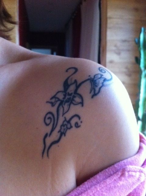 | Dire merci | Bon alors j'ose enfin participer J'ai donc fait faire mon premier tatouage il y a deux ans. il n'a pas de signification particulière (je suis pas du tout dans cet esprit là et je l'assume) juste qu'il me plait. La photo est flou, mais les traits sont fins et nets, comme je voulais. ![]() Il se trouve devant mon épaule gauche, et jeudi j'ai rendez vous pour le continuer... Et pas de dessin précis, on s'est déjà vu deux fois avec mon tatoueur, on a défini les grandes lignes mais le dessin se ferat directement sur mon épaule, avant le tatouage définitif. Après on aime ou on aime pas, mais j'aime le principe de l'agrandir progressivement, avec à terme, recouvrire une bonne partie de mon épaule et avant bras. |