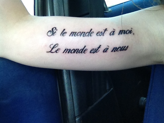 | Dire merci | Moi j'avais trouvé le style d'écriture exact que je voulais, donc il a fait en fonction de ma demande, et les prochains j'ai déjà décidé, ce sera pareil ![]() Ma soeur a fait plusieurs orchidées sur le côté du ventre, il a dessiné à même la peau, lui a montré et go, pareil pour une écriture ![]() Pour ton écriture si ça te dit tu peux tester la ![]() Lien |