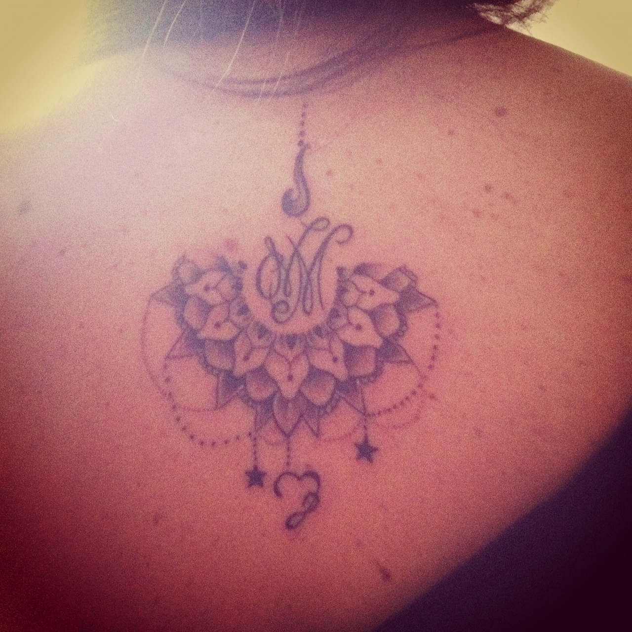 | Dire merci | ce n'est pas du tout mon genre de tatouage, mais j'adore regarder ce genre de photo où l'on voit le travail de l'artiste !! bon voilà, j'y suis passé aussi, j'ai fait mon premier tatouage ! alors c'était pas gagné, parceque j'ai changé mes idées au dernier moment, la veille au soir en fait. j'avais parlé ici, de mon problème, je savais que mon tatouage devait contenir mes symboliques, mais ça faisait des mois que j'essayais de les mettre sur papier, et non rien a faire, ça ne m'emballais pas plus que ça... je vous dis pas l'état de stress dans lequel j'étais ! et puis donc ces derniers jours, je suis tombé sur un style de tatouage qui m'a vraiment emballé. je me suis donc présenté, hier, chez le tatoueur avec toutes mes nouvelles idées ! un peu supris, ils ont finalement relevé le défi, à 2, de 14h à 18h. je suis passé d'un dessin très simple qu'il devait me faire a meme la peau et hop tatouer dans la foulée, et à dessin "géométrique", bourré de petits détails, a faire sur feuille (+transfert), on a modifié je ne sais combien de fois, j'ai pu l'avoir plus que sur mesure tout en gardant mes symboliques, j'ai fais mon emmerdeuse, mais au final ils étaient emballé tous les deux ! Bref je suis ravie !!!!!! Message édité le 25/10/14 à 11:56 |