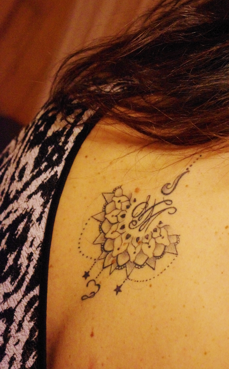| Dire merci | alors ça fait longtemps que ça me trotte dans la tête mais j'ai envie d'un tatouge pas trop gros sur l'épaule avec les initiales de mes enfants, mais je ne le fais pas parce que je ne sais absolument pas comment les mettre en joli dessin. |