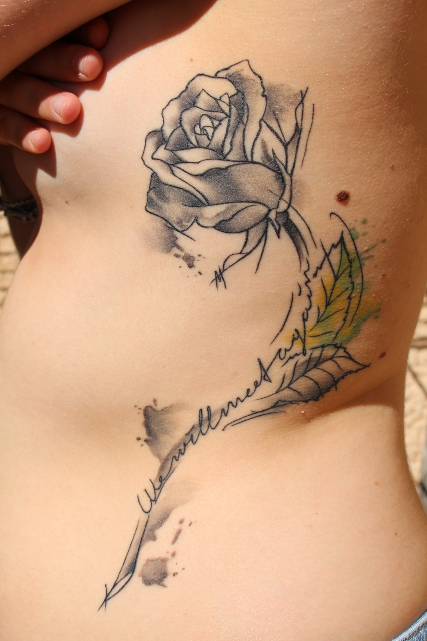 | Dire merci | Oh bin merci Ca me touche d'autant plus que c'est moi qui l'ai dessiné et surtout car il a une symbolique tres particulière pour moi. Je ne pensais jamais sauter le pas mais le dessin m'a peté a la tête alors que je suis une piètre dessinatrice et ensuite bah il me le fallait ce tatouage, c'était devenu viscéral ^^ Comme quoi on peut ne pas vraiment en vouloir et finir avec un tatouage |