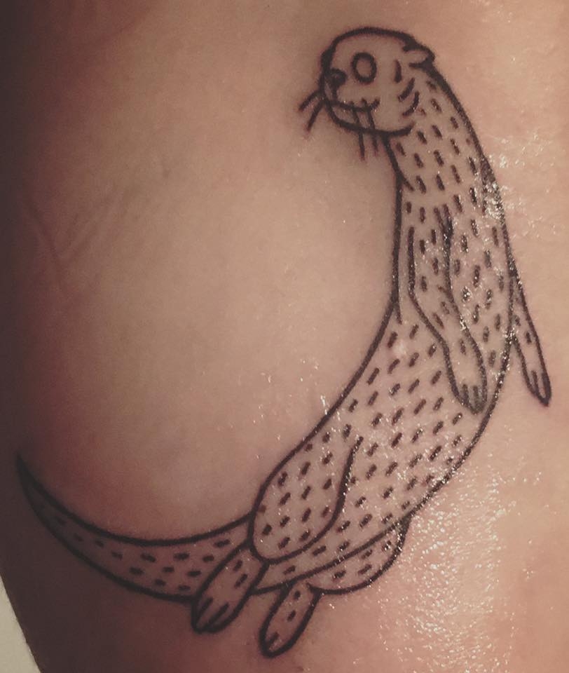 | Dire merci | Je suis repassée sous l'aiguille... Le tatoueur avait un créneau pour cette semaine... j'y étais allée pour des renseignements mardi. Du coup voilà, j'ai ma petite loutre à l'intérieur du bras.. toute simple comme je voulais! Un peu plus d'une dizaine de centimètres. Sur la photo, le haut de mon bras est en haut de la photo et il est tout frais d'une heure. |