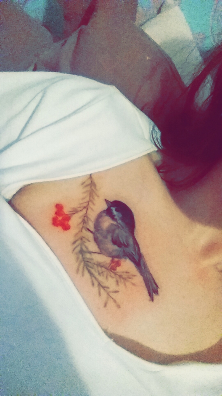 | Dire merci | Ah bah tiens ma tatoueuse à posté une photo de meilleure qualité sur sa galerie ...![]() On voit quand même un peu mieux, la branche a été redessinée au dernier moment, elle était droit sur le dessin, elle l'a légèrement courbée pour qu'elle pointe vers l'épaule ! |