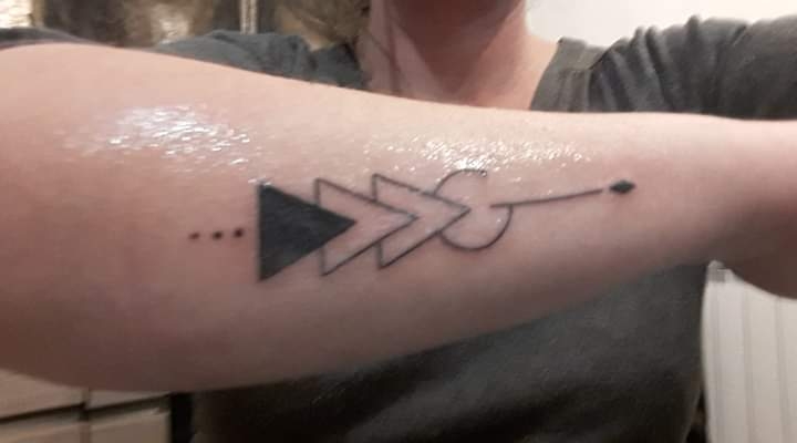 | Dire merci | arwen73100 , cela représente la fraterie, ma soeur (elle a fait le même, au même endroit mais avec le triangle plein au milieu puisque 2ème ) et mon frere Merci, il m'a plu de suite simple, fin, linéaire. Du coup pour le prochain, celui qui représentera mon fils, la ligne de départ sera un electrocardiogramme. Je réfléchi encore au dessin définitif car je veux y inclure différente chose. |