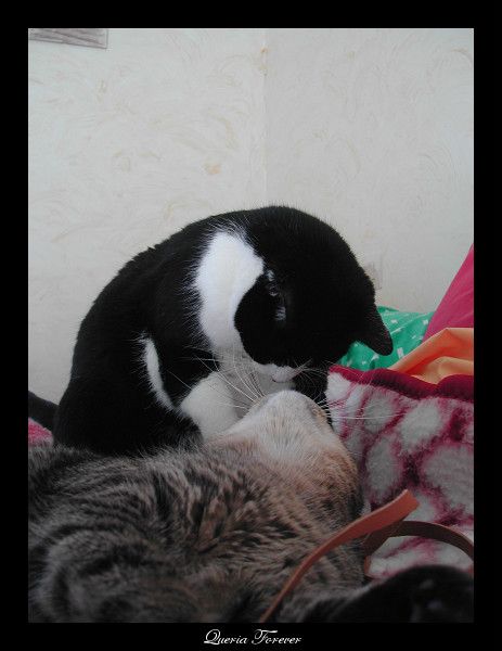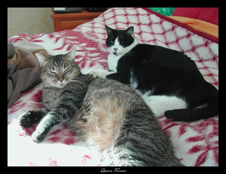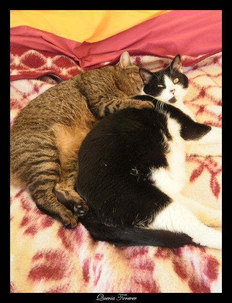 | Dire merci | Ils ont fait le plein de croquettes pour affronter le dur hiver... sur le radiateur? (je rigole mais le mien est pareil... mdr)Sassy est classe et distinguée, bien sur qu'elle ne peut pas dormir avec les mecs... |