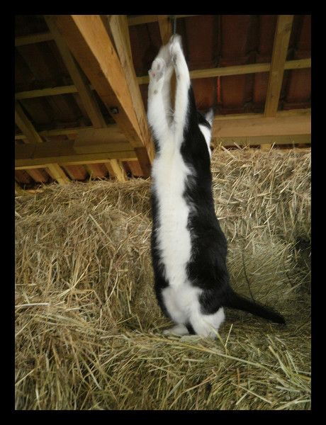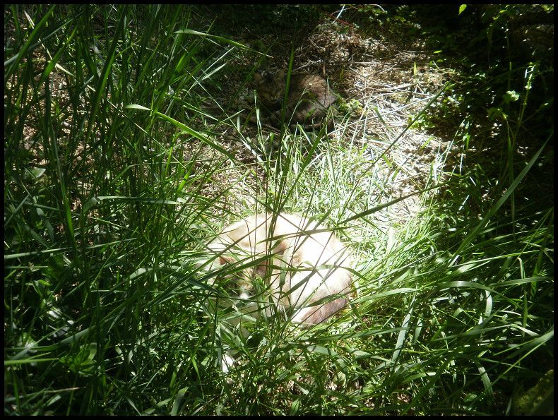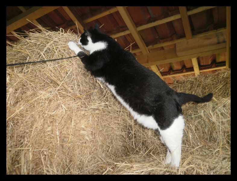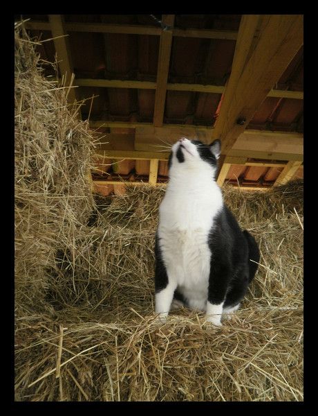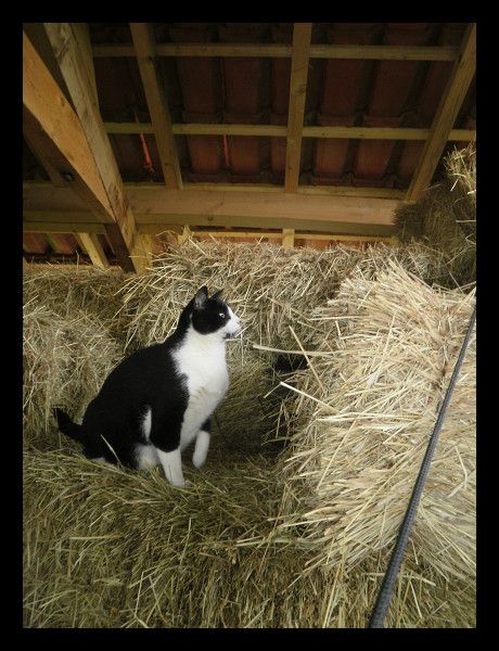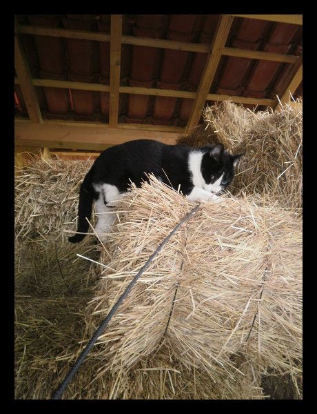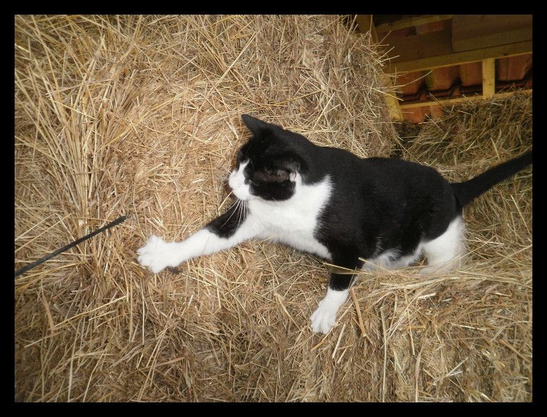 | Les miens en ce moment c'est rare qu'ils se couchent dedans, leur nouvel endroit pour dormir,c'est la réserve à foin: et oui ça sent bon et surtout c'est plus facile pour guetter les souris |