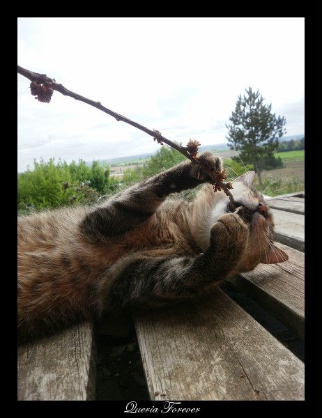mihakeeper1 Chabou c'est le plus sociable des 3, il nous suit partout mais c'est aussi le plus gros chasseur je ne compte plus les bébés lapins et les moineaux déplumés dans la maison |
